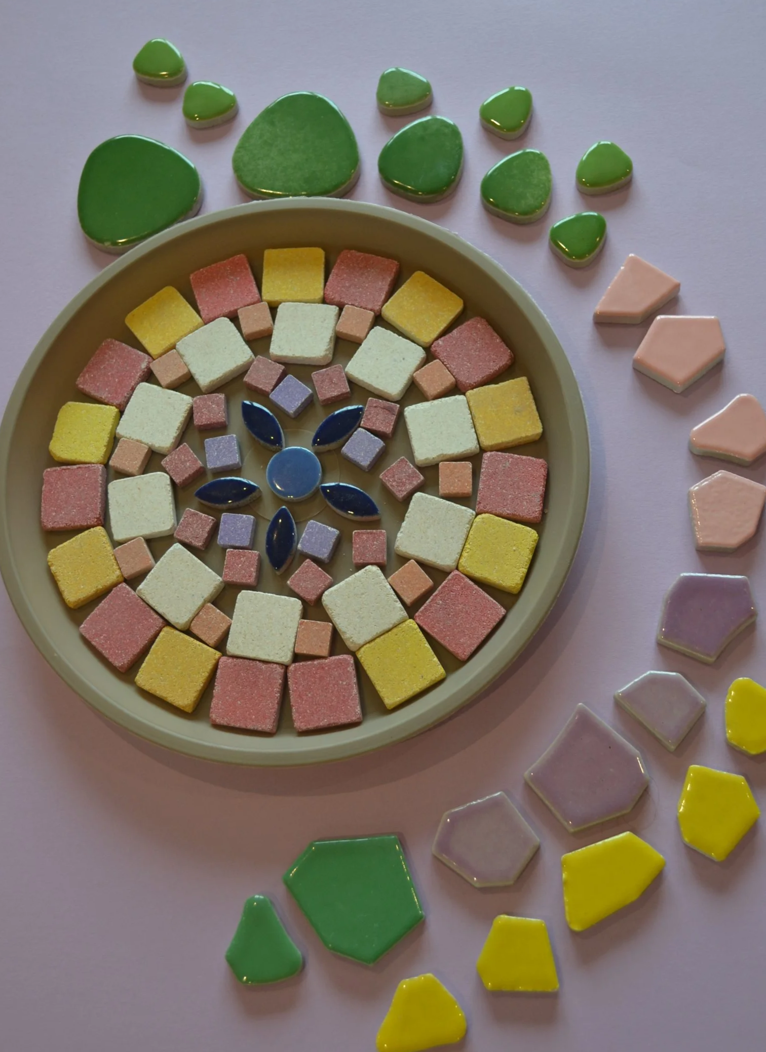 Hier dreht sich alles um die gefiederten Gartenbesucher! Am ersten Termin gestalten wir eine Vogeltränke aus einer großen Auswahl an Mosaiksteinen.